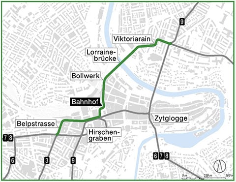 Eine Tramlinie am Viktoriarain steht zur Debatte. Der QVK hat sich im Rahmen des Mitwirkungsverfahrens (siehe Infos hier) mit Vehemenz gegen die vorgeschlagene Variante 2 Lorrainebrücke-Viktoriarain ausgesprochen.